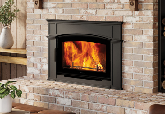 The Ashford 25 is a medium sized fireplace insert. At 2.3 cu. ft., the firebox will take up to a 22″ log and can deliver warmth for up to 25 hours on low. The Ashford 25 is very clean and efficient and can heat from 400 – 1,600 sq. ft. The door features a large, 24″ x 11″, wide-screen glass viewing area with a nickel plated and hand made olive-wood door handle. Attention to detail is evident from the layered surround panel to the unique control system that allows you to select the heat you want, and is featured in Metallic Black, Cast Grey and Chestnut Wood Enamel.